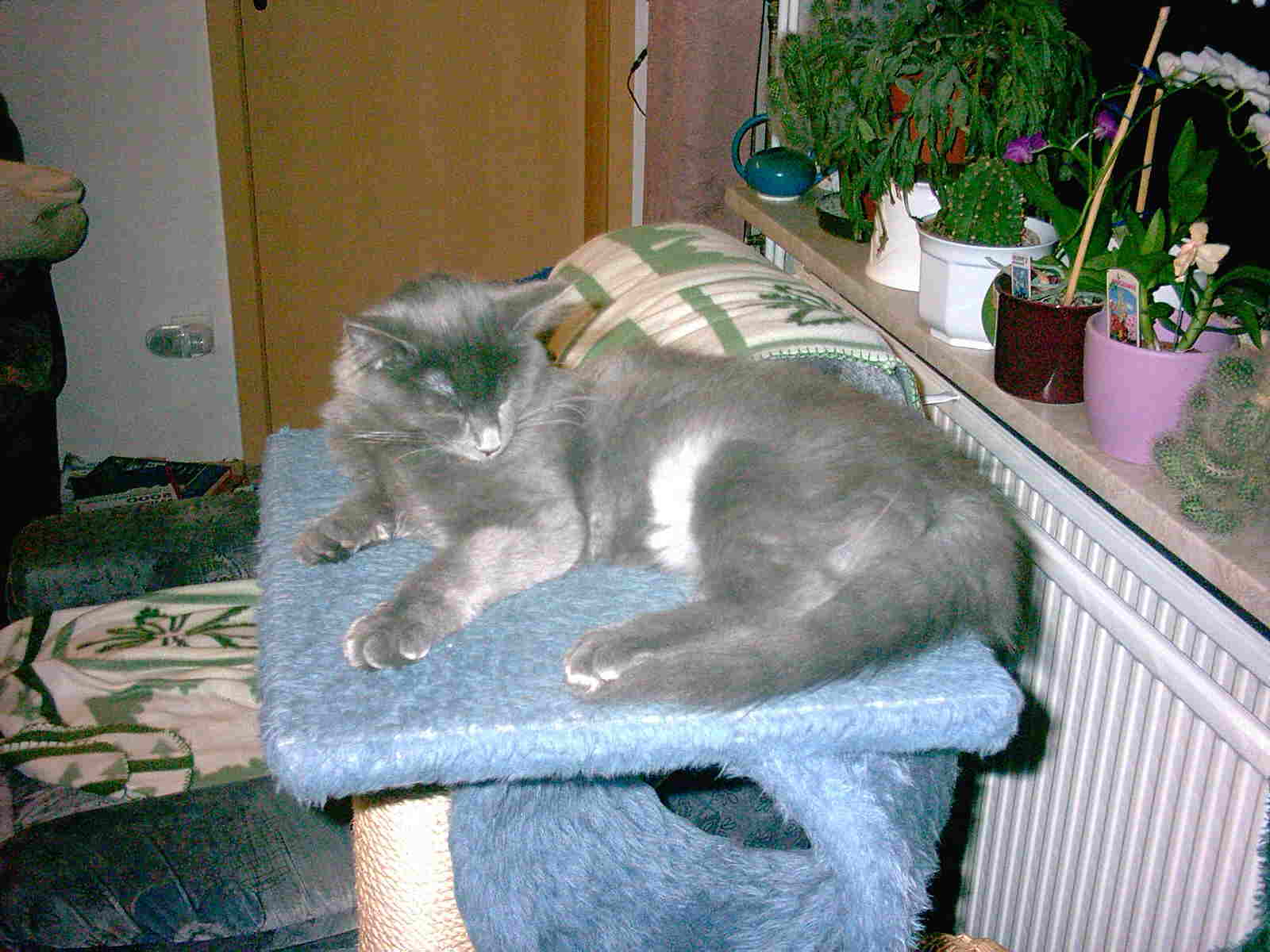 10.10.2005: Nun ist unser Blaubärchen schon 23 Wochen alt. Sie wiegt 2555 g und ist ordentlich gewachsen. Arwen ist eine selbstbewußte kleine Lady, die weiß was sie will. Und das versucht sie mit allen Mitteln durchzusetzen, was ihr fast immer auch gelingt. Da sie immer so alleine war, wenn unsere Freigänger draußen waren und sie dadurch sehr traurig war, hat sie noch eine kleine Freundin bekommen, die Branwyn. Die ersten 3 Tage hat Arwi zwar gezickt was das Zeug hielt, aber dann war das Eis gebrochen und heute sieht man die zwei fast nur noch im Doppelpack. Es ist zu schön die Beiden beim gemeinsamen Schmusen oder Spielen zu beobachten. Manchmal gehen sie sogar zusammen aufs Klo! Nun aber genug , jetzt kommen die neuen Bilder.