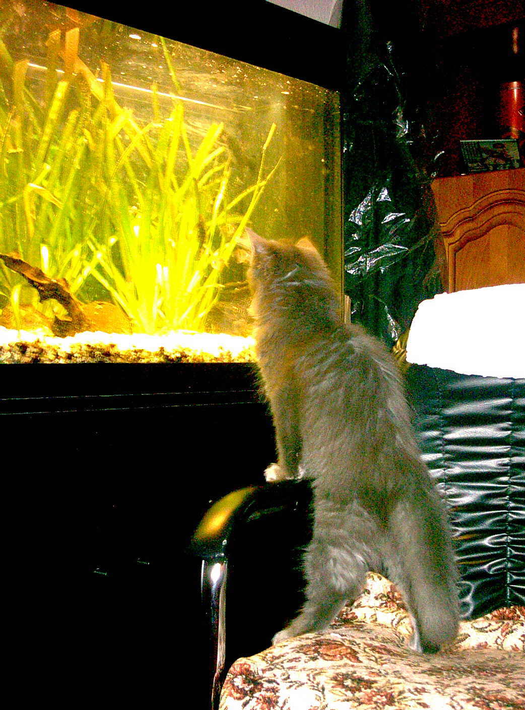 Die Entdeckung der Aquarianer. Arwen findet die Fische hoch interessant. |