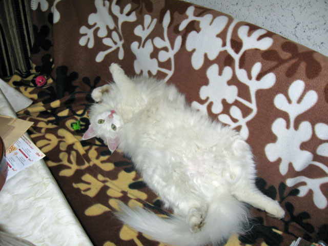 25.11.2009: Heute genau vor 4 Monaten bin ich nach Thüringen gezogen und ich muß sagen, es gefällt mir hier. Ich wiege jetzt mit 15 Monaten 5,3 Kilo. Inzwischen habe ich mich gut eingelebt und ich habe gelernt, wie man durch die große Hundeklappe rein und wieder raus kommt. Mama ist ganz stolz auf mich. Seit ein paar Wochen schlafe ich nachts mit bei meinem Papa im Bett. Ich liebe den Garten und auch immer noch mein Fensterbrett in der Küche. Aber die Eckbank in der Küche ist mein allerliebster Platz. Manchmal schimpft die Mama auch mit mir, wenn ich die anderen Katzen ärgere. Letzens habe ich die Willow so erschreckt, das sie jetzt kaum noch was ißt. Na hoffentlich beruhigt sie sich wieder, ich wollte doch nur mit ihr spielen und eigentlich bin ja ein ganz Lieber. Ansonsten komme ich hier gut mit allen klar. Vorallem mit meinem Bruder Merlin und mit Sammy, dem Hund. Wir spielen gern miteinander. Nun aber schnell, jetzt kommen die neuen Bilder von mir. |